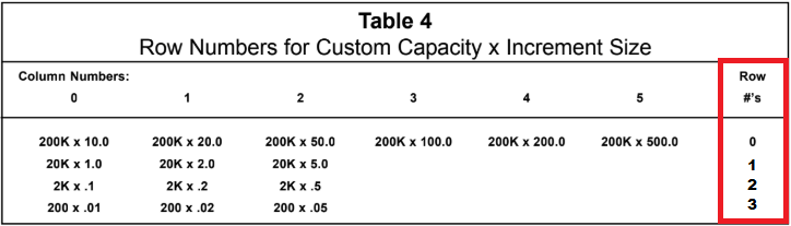 15. Type in the row number corresponding to the capacity of the system from the table below.