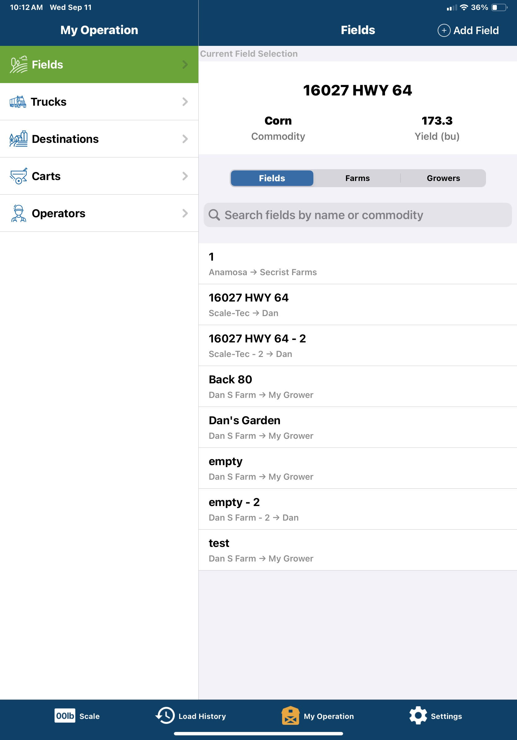 1. Open the REAP app, connect to the scale, and select the "My Operations" tab at the bottom of the screen.