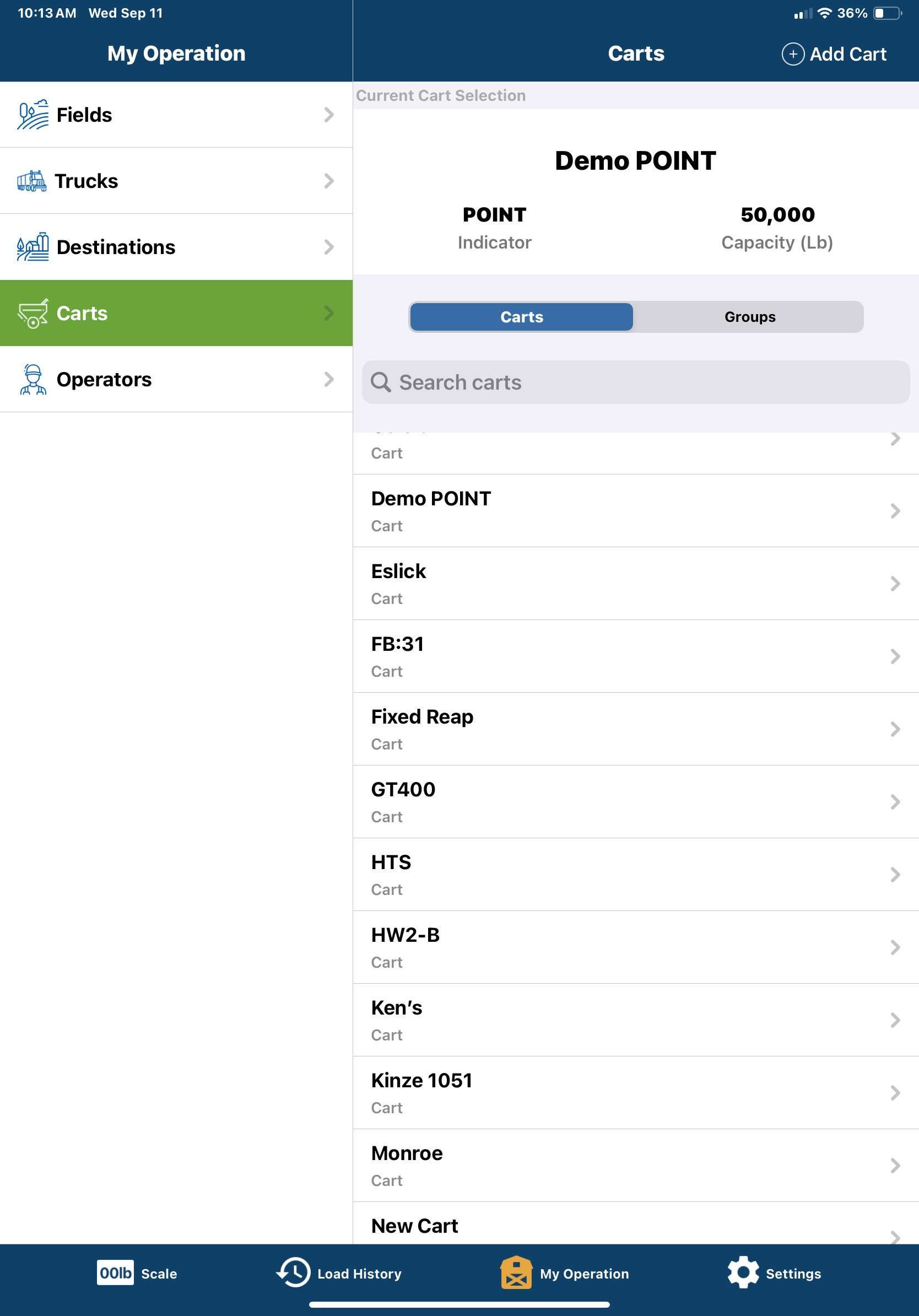 4. The cart information and cart settings will appear on the right side of the screen. Scroll down to the Scale Calibration window.