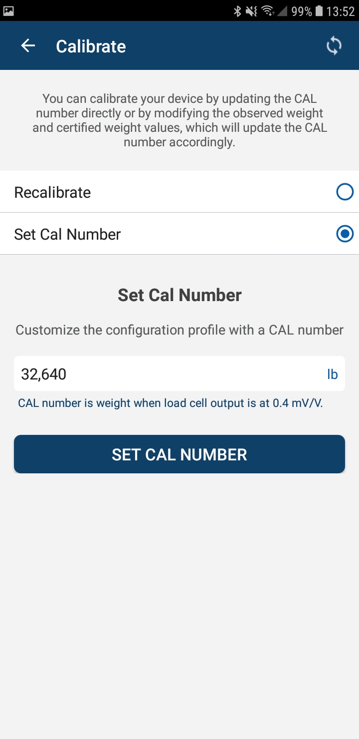 3. Enter in your observed weight by clicking on the number next to the field, as well as the certified weight and click "Re Calibrate"