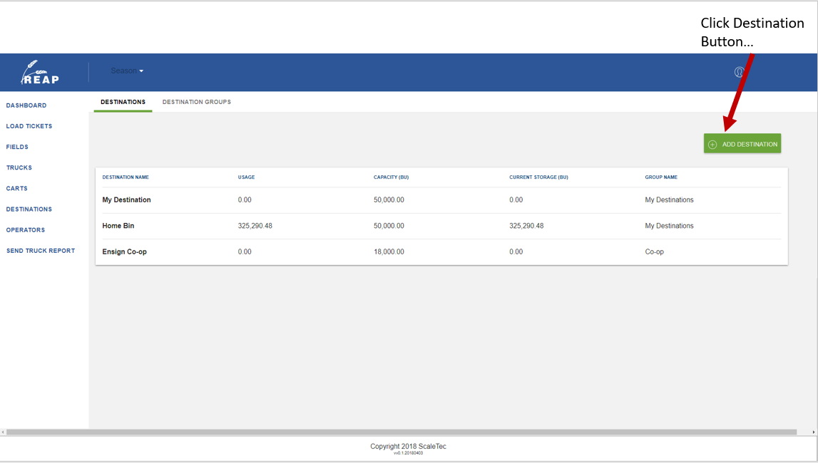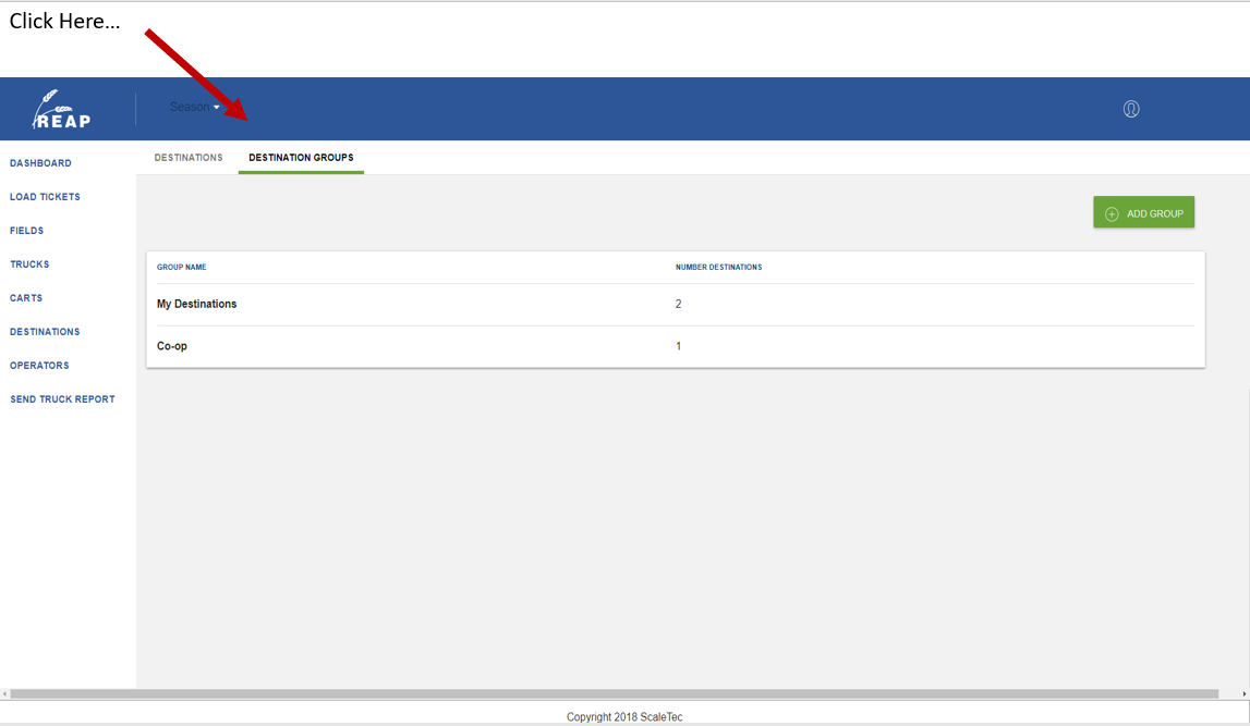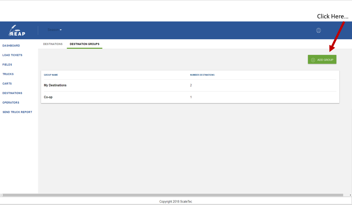 In order to create a destination within the REAP web portal, you first need to create a Destination Group
