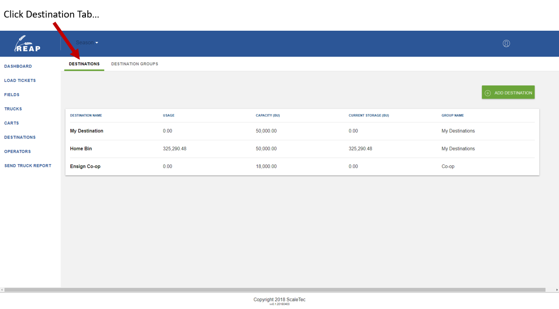 1. While in the Destinations Module, Click the "DESTINATION" tab.