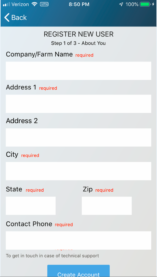 1. Click the "Create Account" link on the log in splash screen.