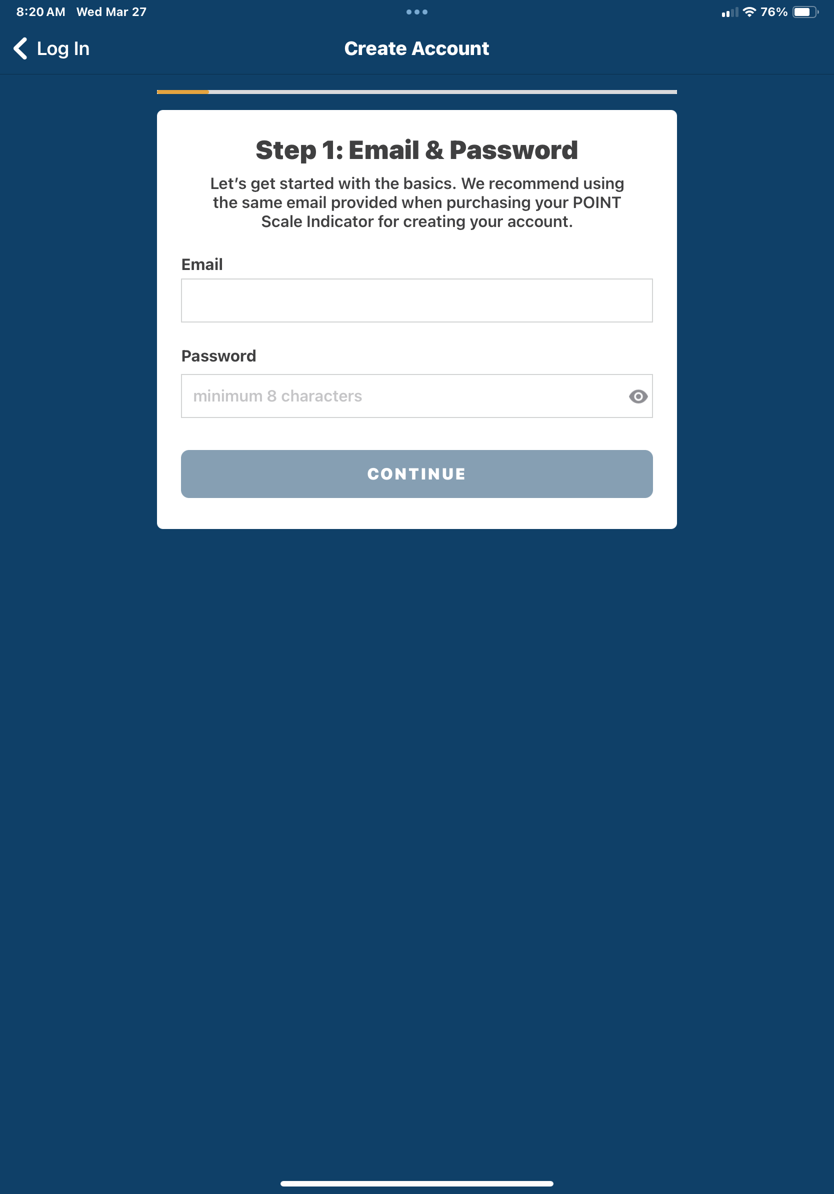 This help article will walk you through creating a POINT account with the iOS App. Once you create an account you can then connect and register your POINT device to your account.