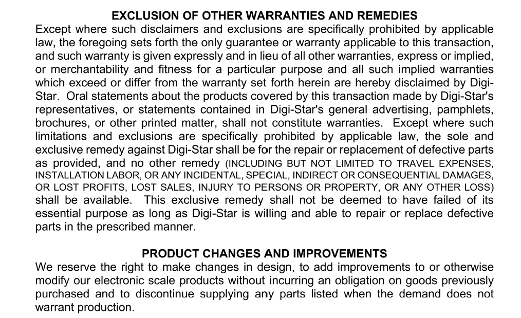 Herdstar LLC. (“Herdstar”) warrants to original purchaser (“Buyer”) that goods manufactured solely by Herdstar LLC. (“Products”) will be free from defects in material or workmanship under normal and intended use and service for a period of one year ...