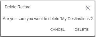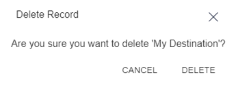 If deleting a destination, a warning pop up window will appear to confirm you want to delete. Clock "Delete" to confirm action.