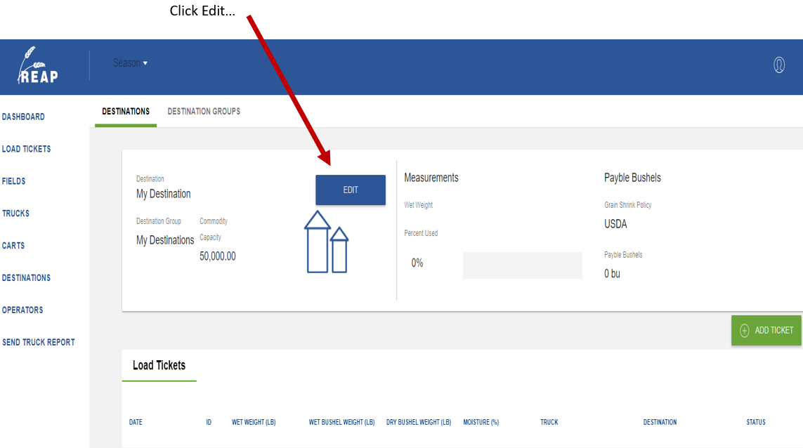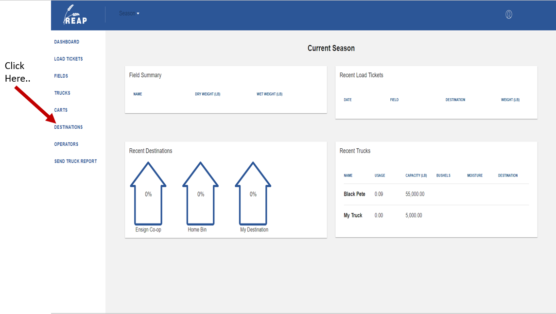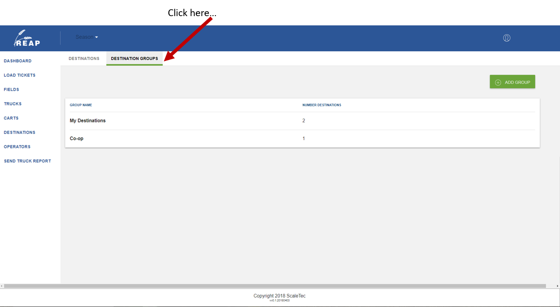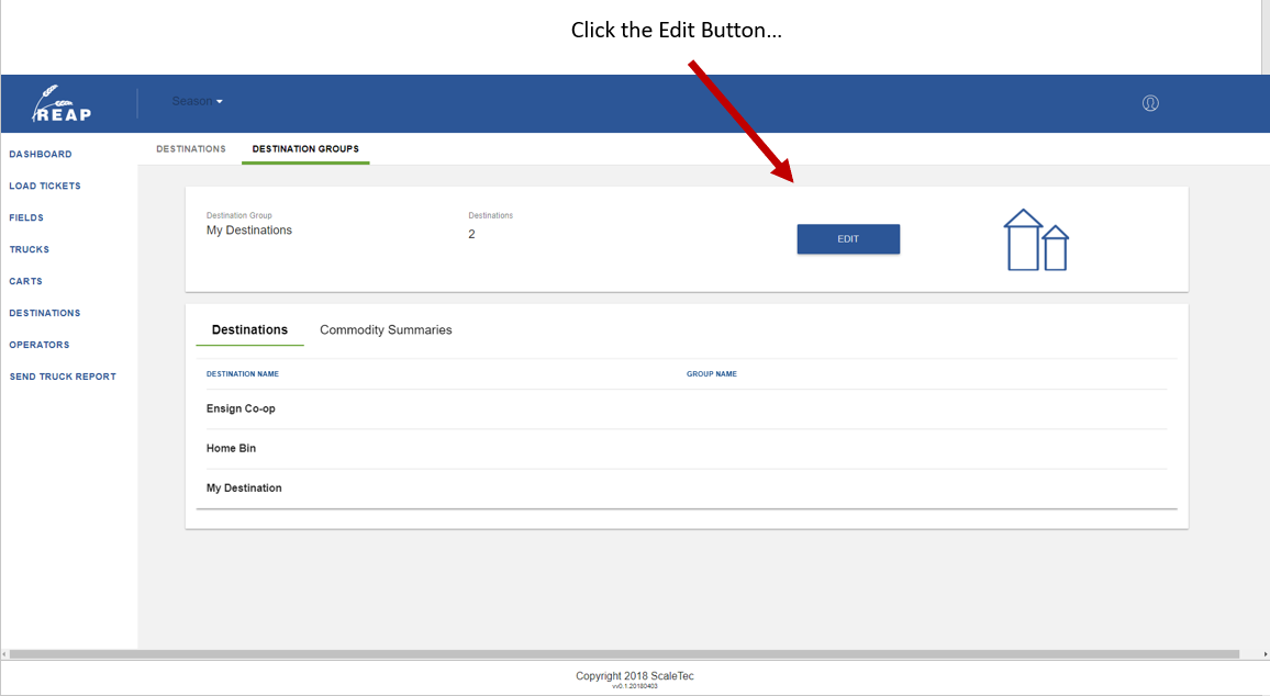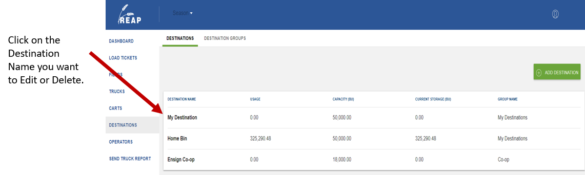 In order to create a destination within the REAP web portal, you first need to create a Destination Group You can not have multiple commodities allocated to a single destination.....If you are storing multiple commodities at a single destination, you ...