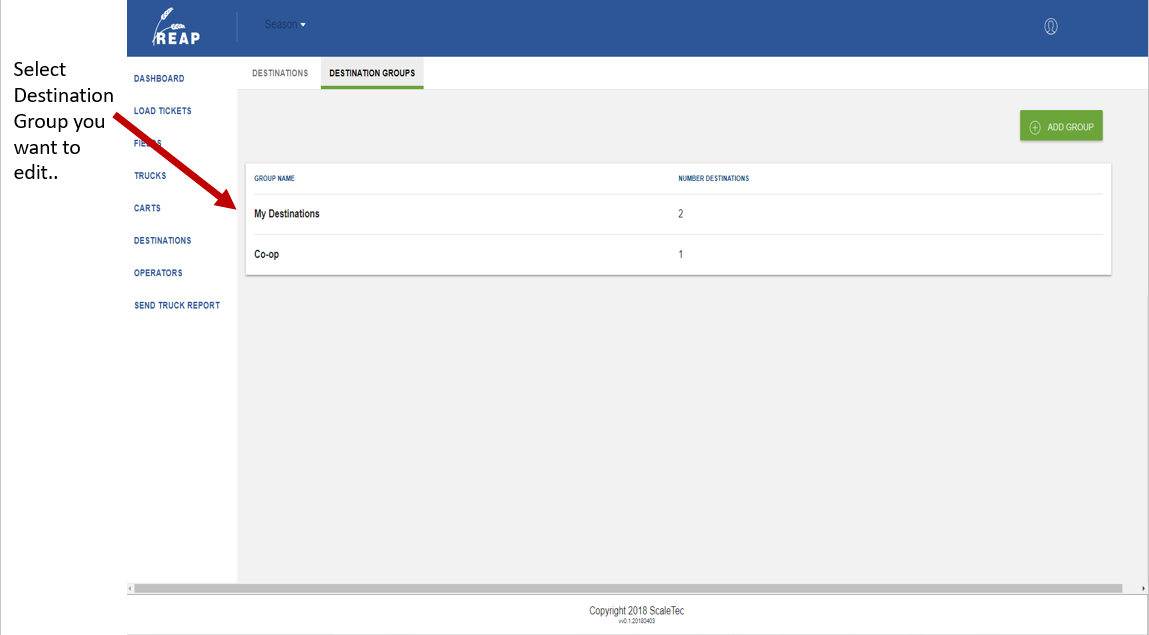 Editing or Deleting a Destination Group or Destination in the REAP Web Portal.
