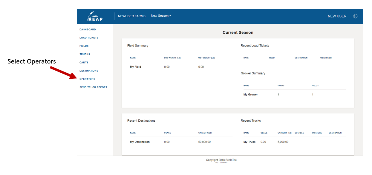 1. Select the Operators Module from the left side menu option of the main dashboard.