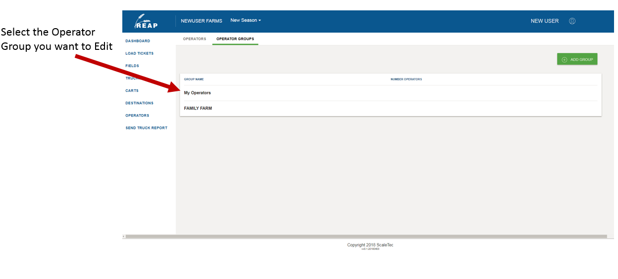 1. From the Operators Manual, select the Operator Group Tab.