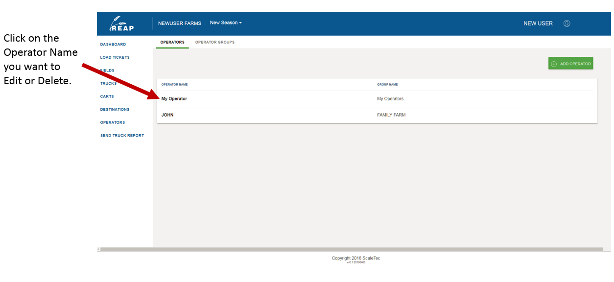 2. Select and Click on the Operator Name that you would like to edit or delete.