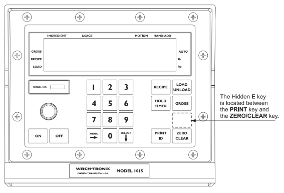 2. Hold the hidden E key for two seconds until 1015E is displayed.