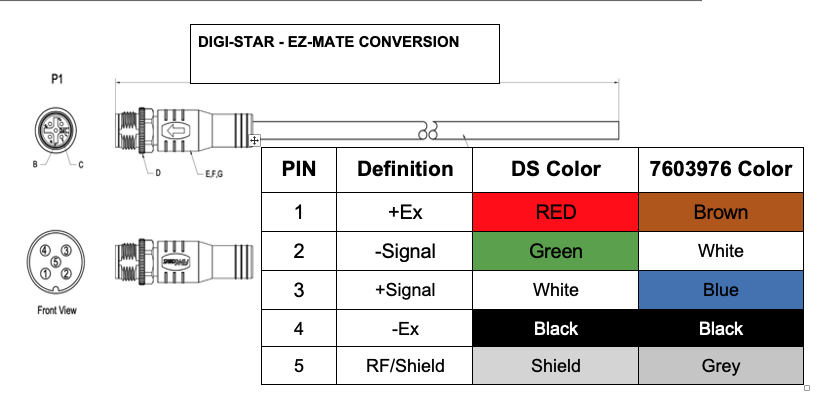 The below is the pin-out for the weather pack on a Digi-Star Autolog PTO sensor/Rotation Counter Sensor. Pin A - Black Pin B - Brown Pin C - Blue Sensor to pigtail color matching Black - White Brown - Red Blue. - Black