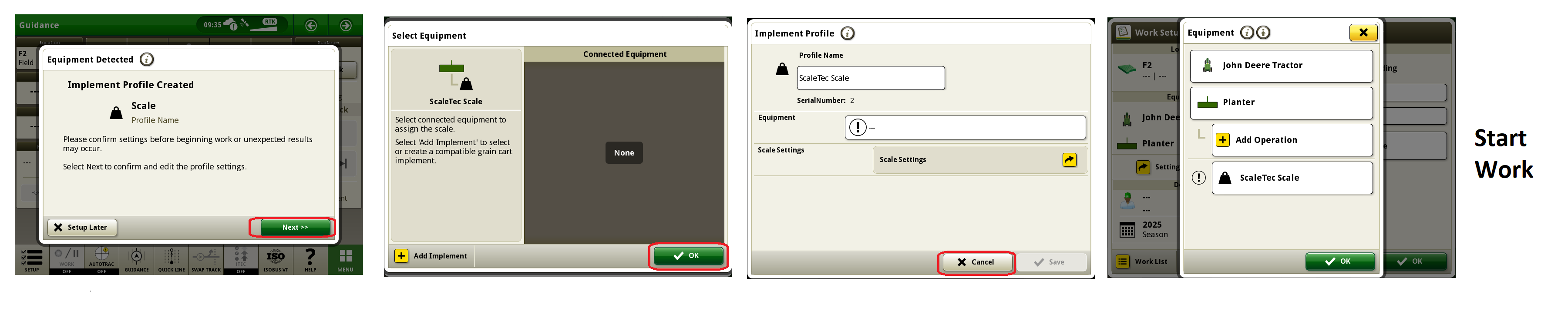 After a Gen 4 or Gen 5 John Deere display has been updated to software version 25.1, the display may prompt the user to setup an implement profile for the scale. For all non-harvest related scale systems, follow these steps.