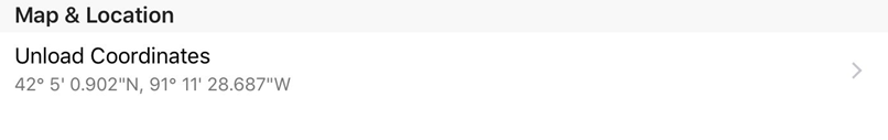 The location data can be selected within the load history screen for the load ticket. Selecting the location data will open the location within a browser displaying the location on a topographic image map.