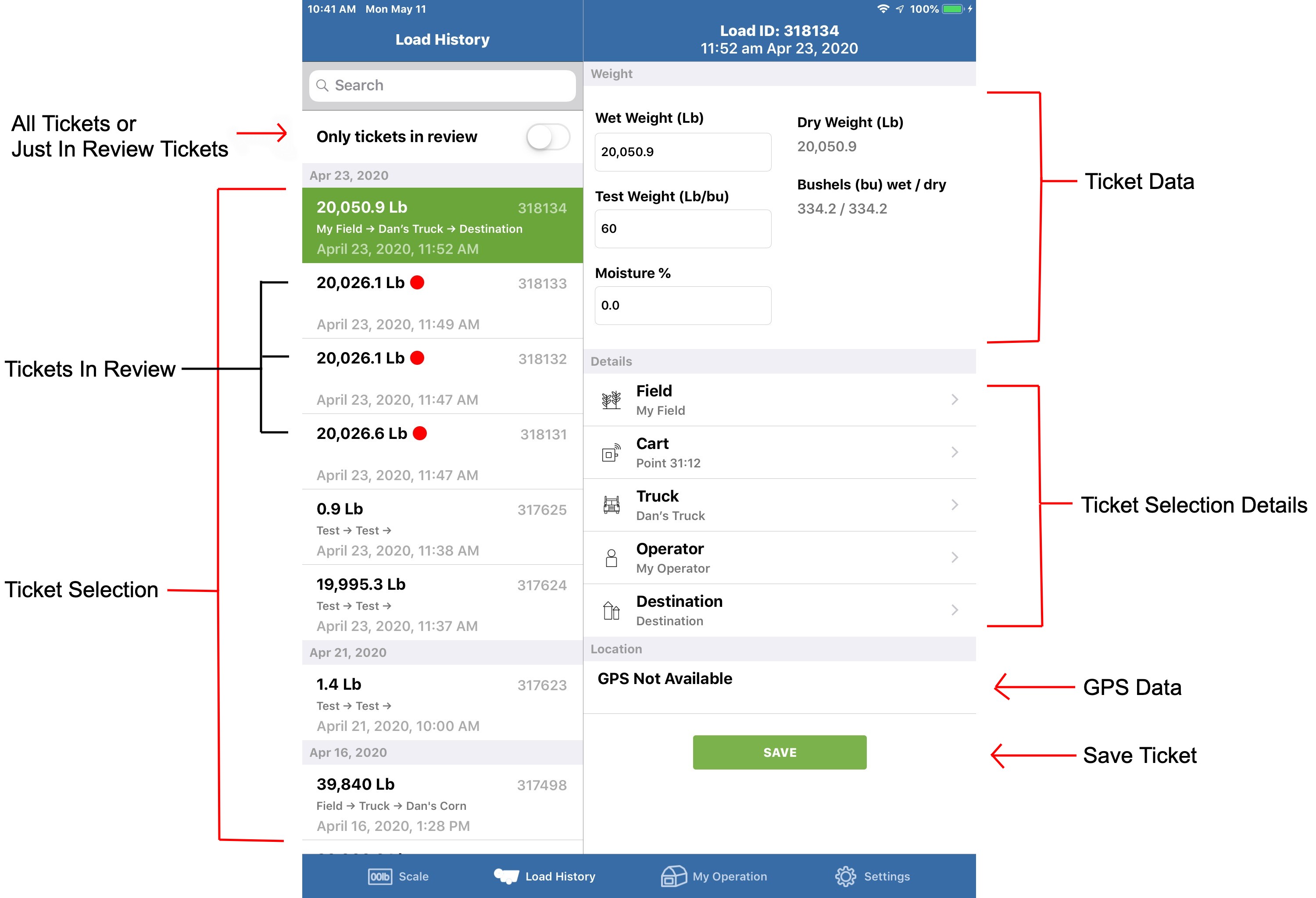 FIELD / TRUCK / DESTINATION of Ticket: This provides you a quick reference of the chain of custody of your load history.
