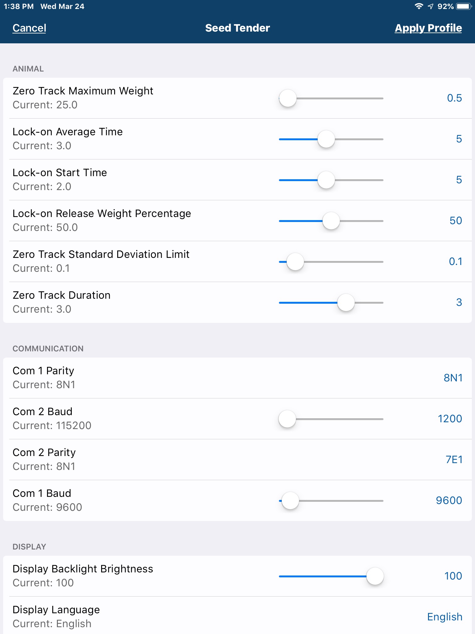7. Once you have made your adjustments for the profile, tap the "Apply Profile" in the upper right of the screen.