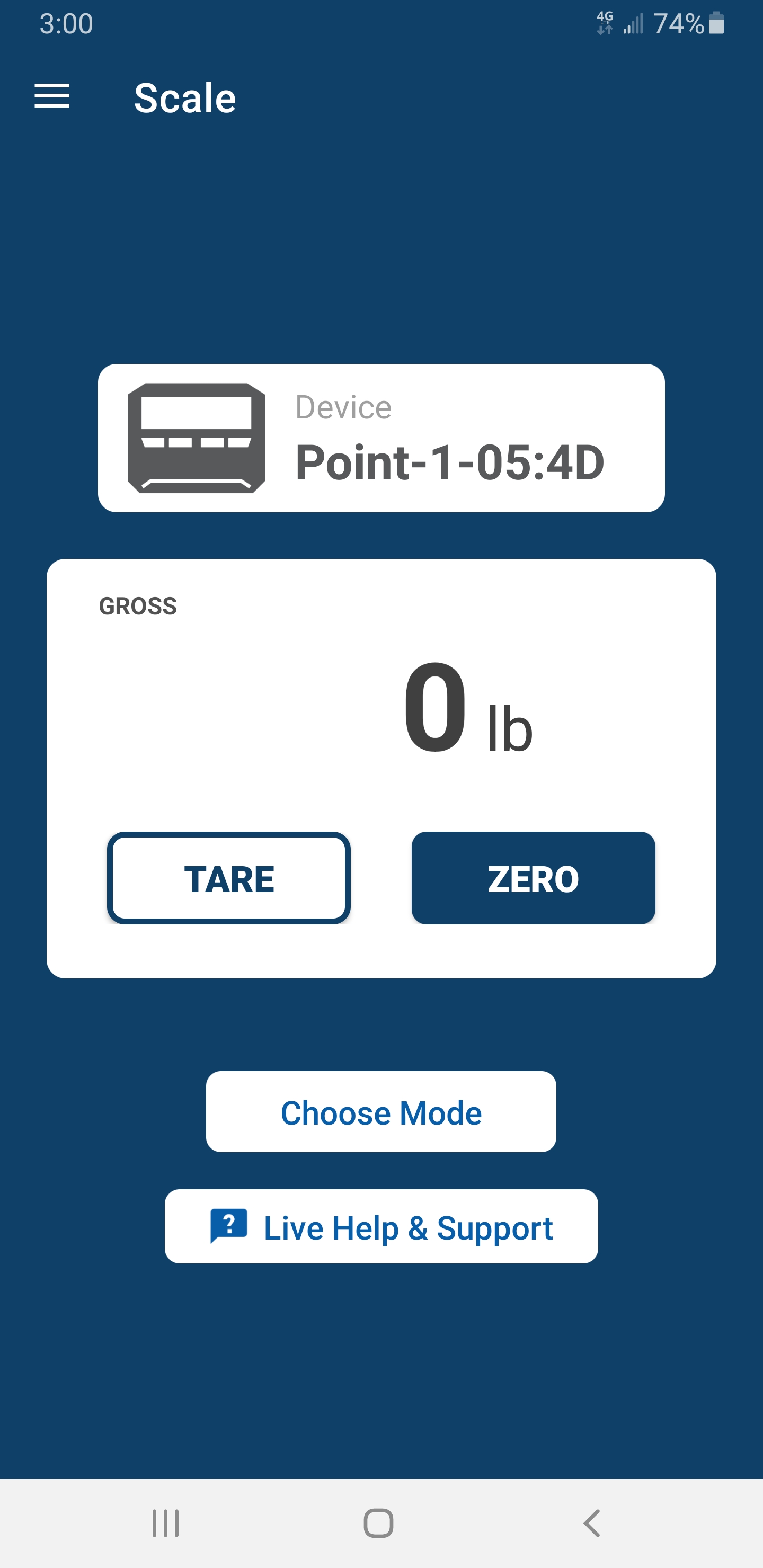 In the POINT mobile app, connect to the scale and tap the Choose Mode button on the Scale screen.