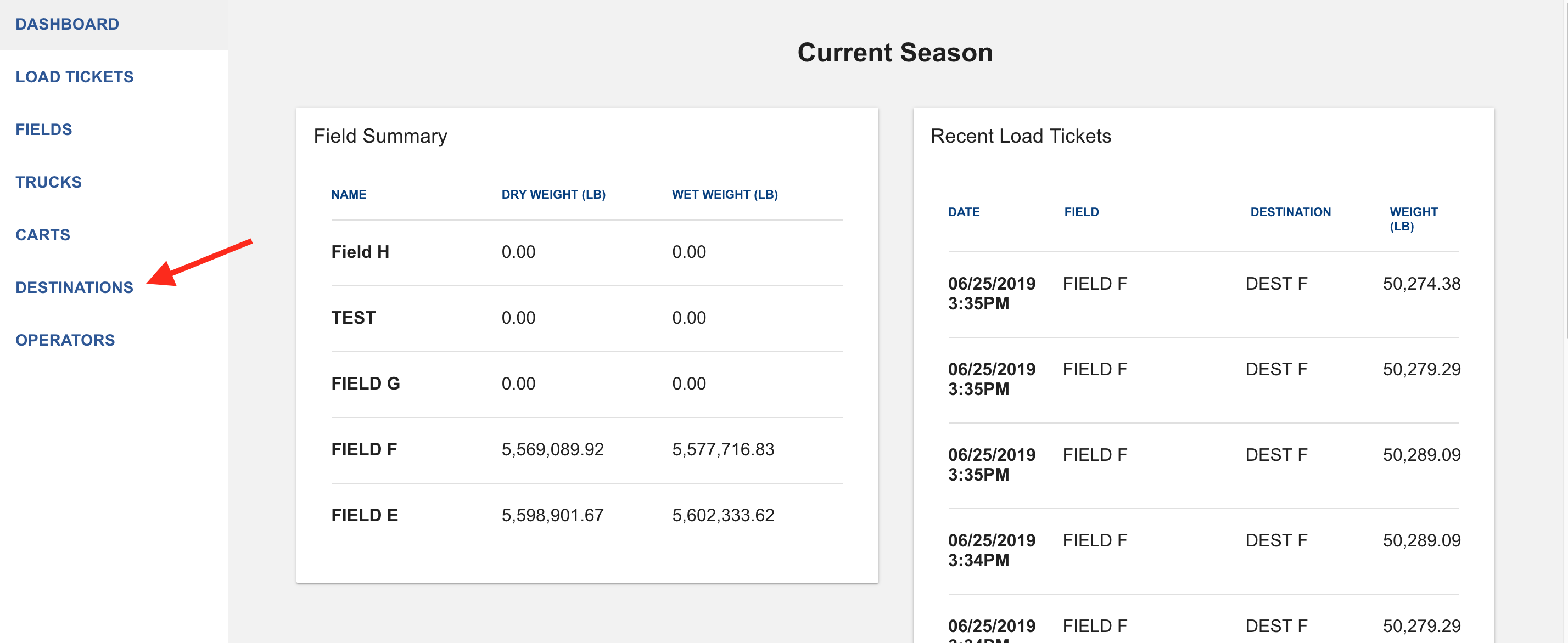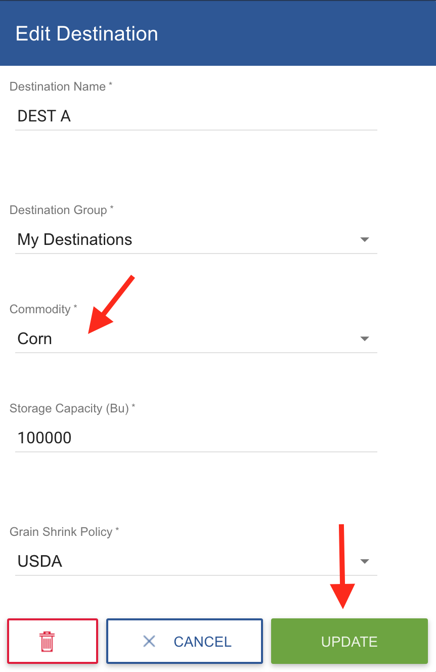 It is important to ensure that after starting a new season within REAP, you verify your commodities are setup correctly within your Destinations. REAP does not know how your current destinations are rotated with crop commodity, and it requires you to make any updates to commodities setup within your Destinations.