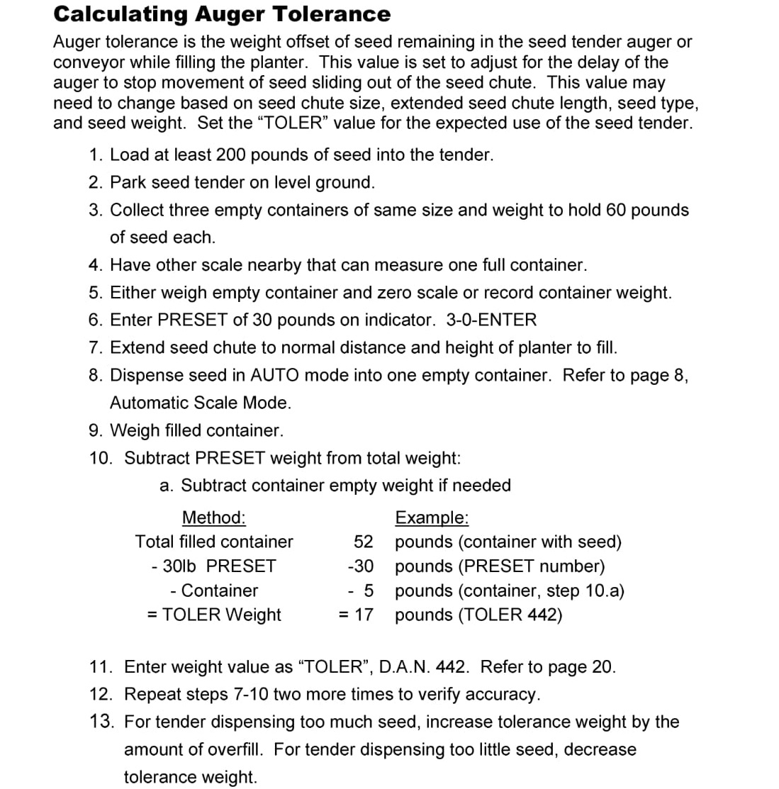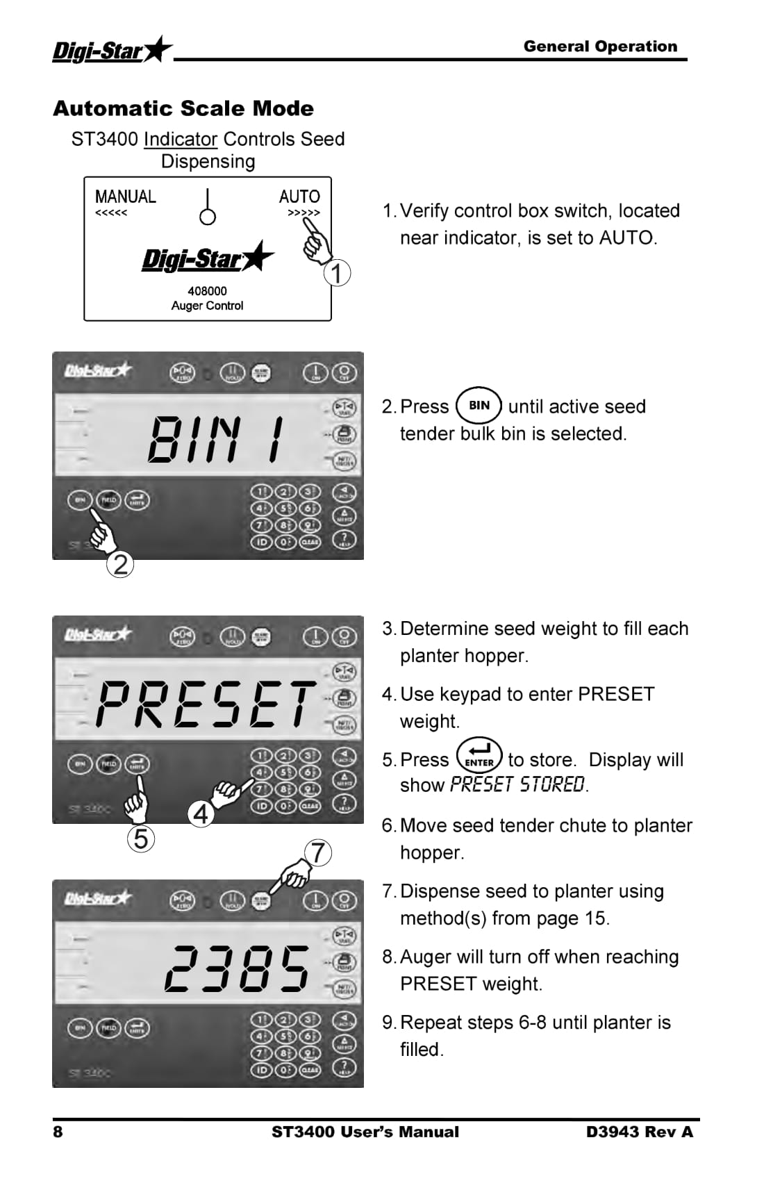 The Automatic Scale Mode allows the indicator to turn off the auger when the preset weight is reached.